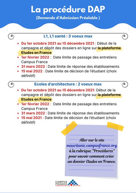 Rendez-vous sur Campus France Mauritanie ou abonnez-vous à la page Facebook pour retrouver toutes les informations.