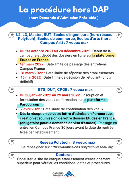 Vous avez jusqu'au 20 décembre 2021 pour soumettre votre candidature Hors Demande d'Admission Préalable :
